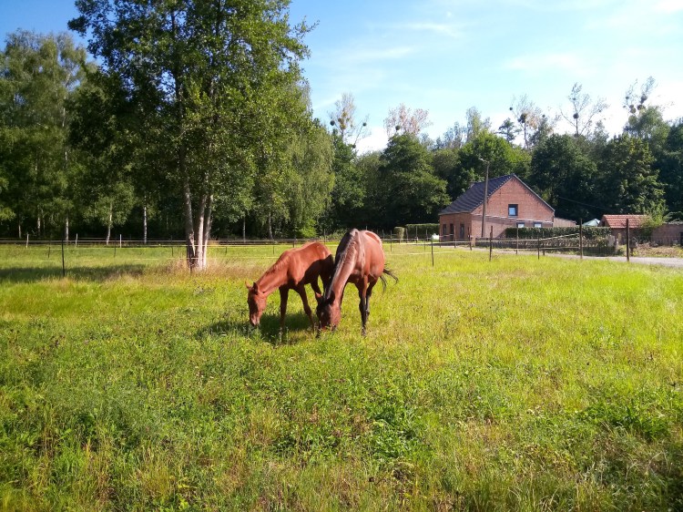 Zoals je het vorige bericht al kon lezen, waren er strubbelingen tussen Don en Qui. We moesten hen apart houden, omdat ze Don hengstig was en Qui natuurlijk niet gedekt kon/ wou worden. Don werd hierdoor een beetje gefrustreerd, door onvoldoende ruimte moesten ze dus apart gezet worden.